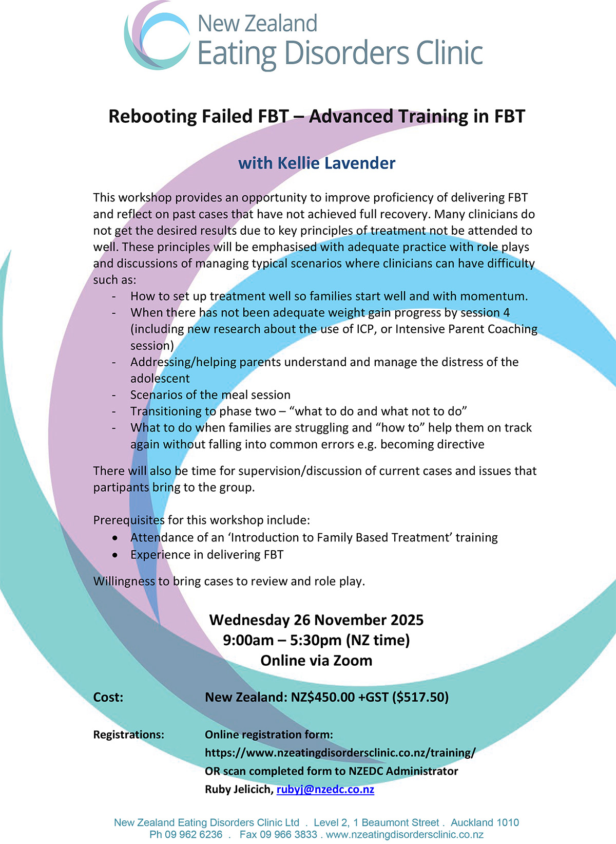 The FBT and Advanced FBT training each have their own registration form. If you are attending both, completion of both registration forms is required. Please either complete the printable copy (button above) or use the online registration form below.